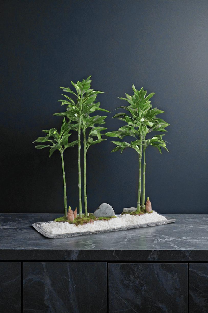 和紙、粘土、絵具、針金などを使った全て手作業による人工の盆栽。細部まで丁寧に作りこまれ、至近距離から本物と見分けがつかないほど、とてもリアルな仕上がりです。