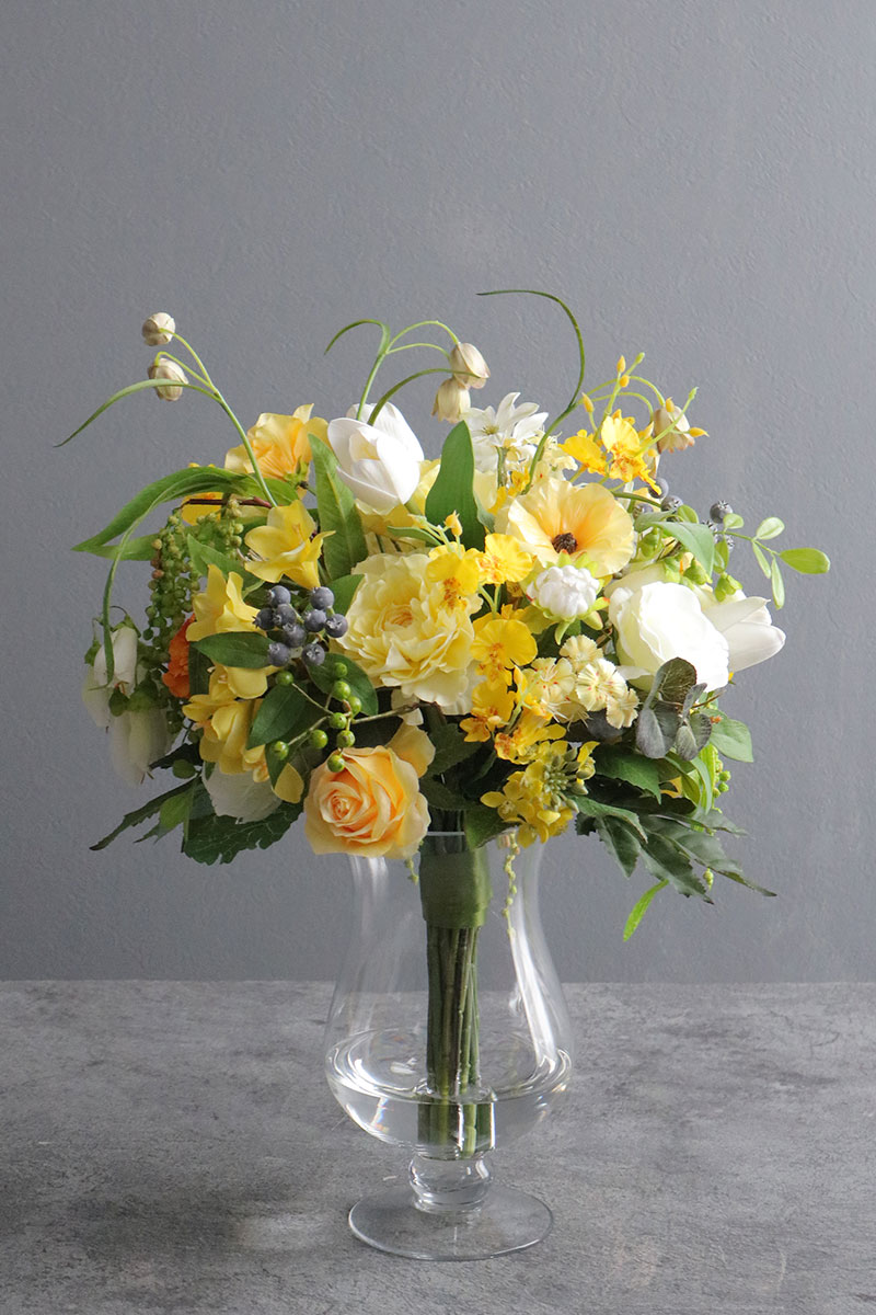 花器のセレクトは当店にお任せいただきます。基本的にはAシリンダーベースで制作していますが、形にご希望がある場合は、可能な範囲内で対応させていただきます。ご注文時にお知らせください。