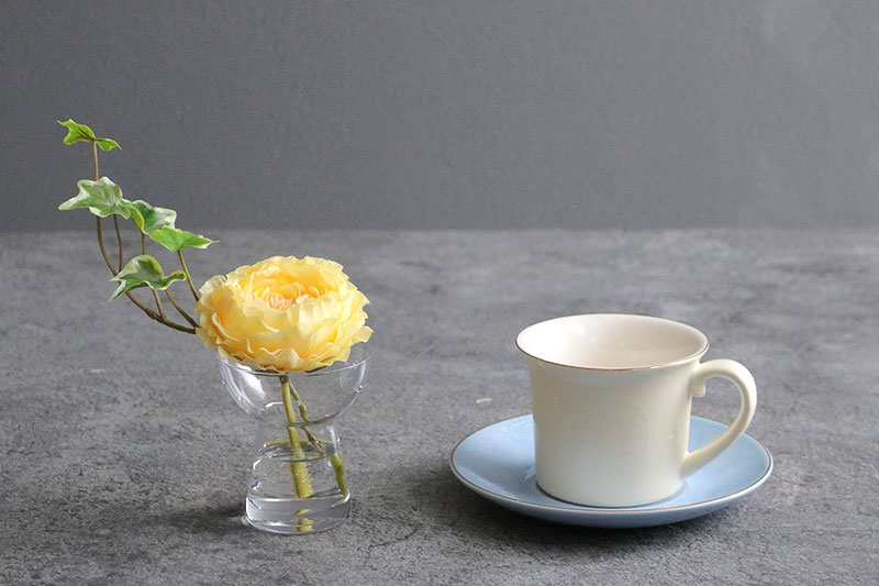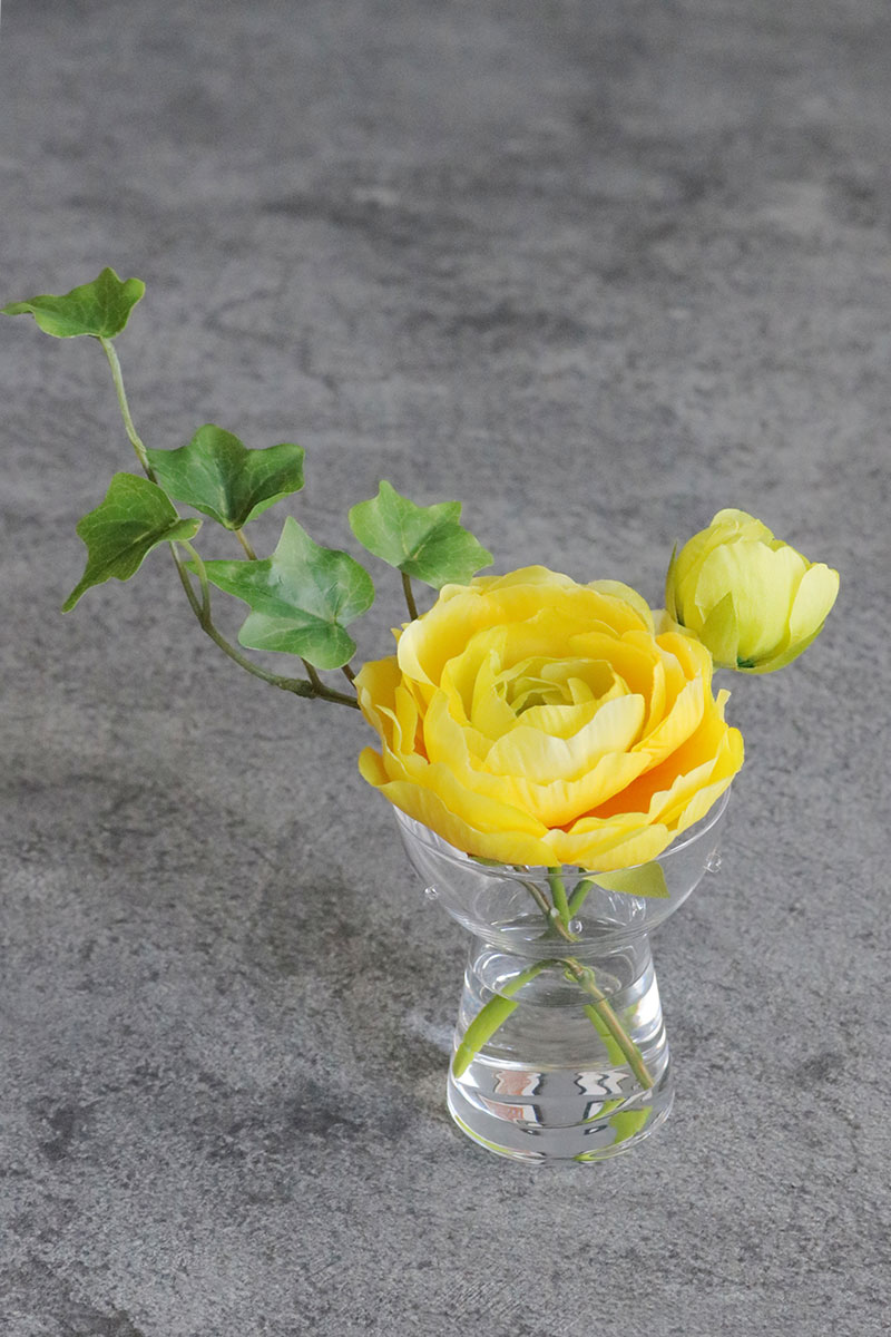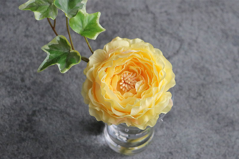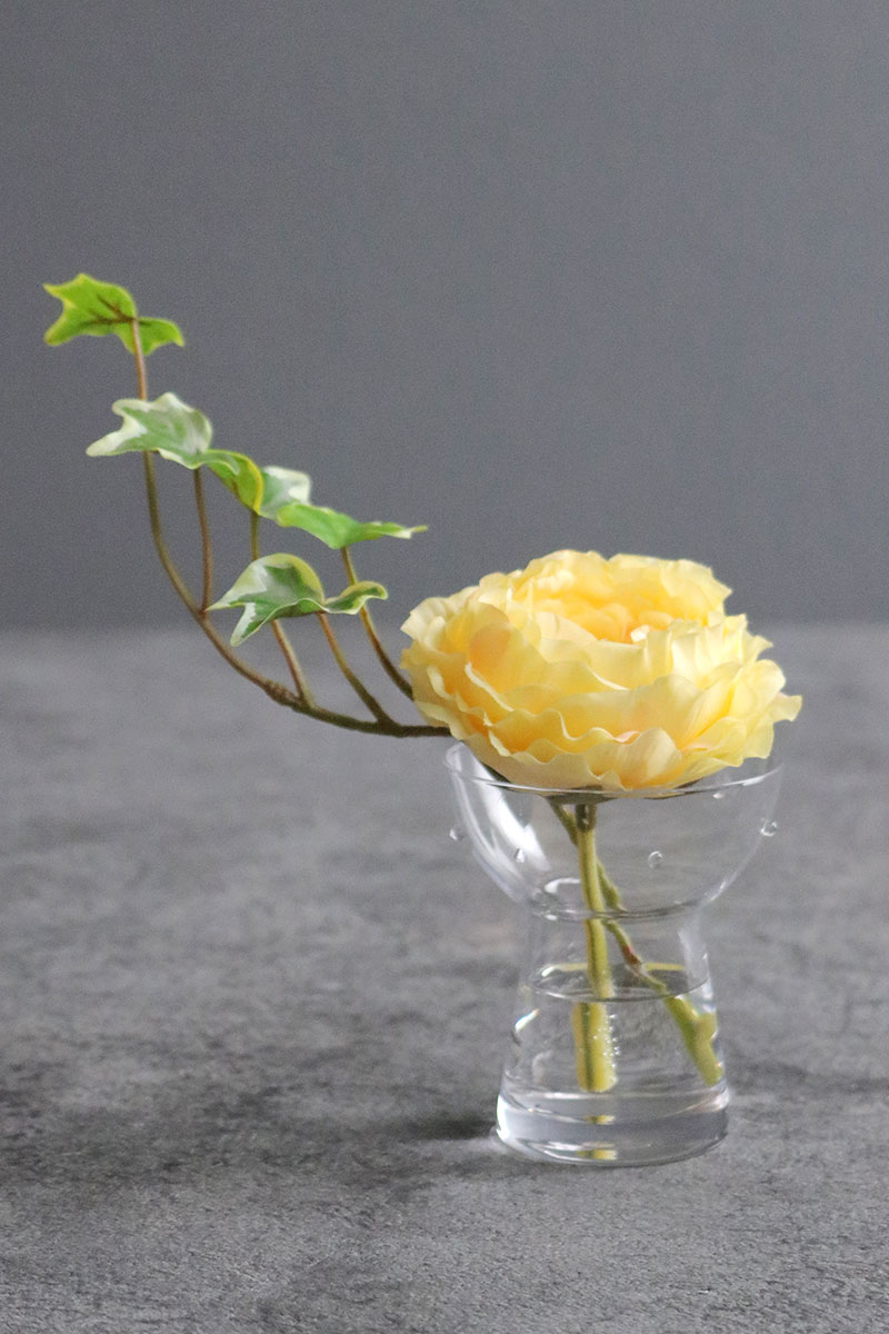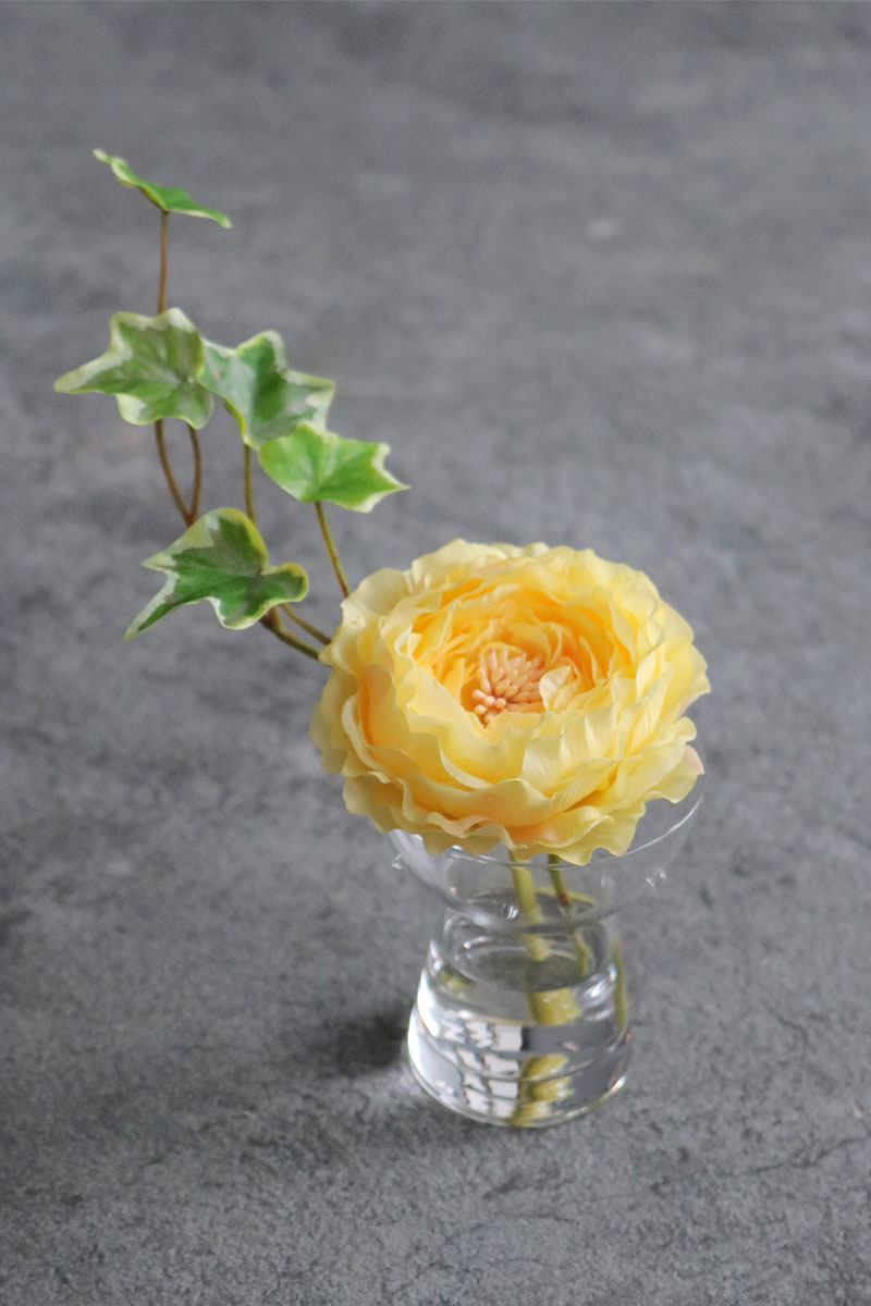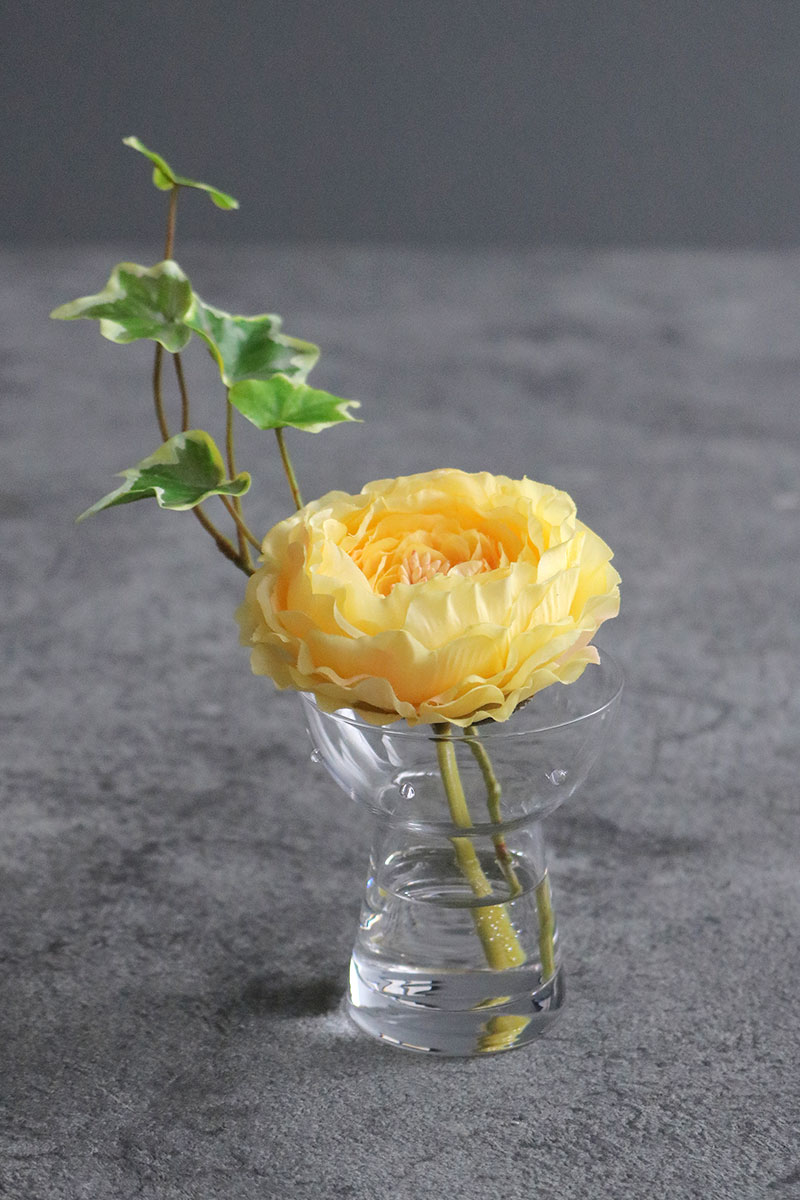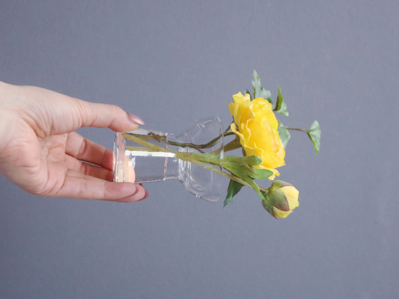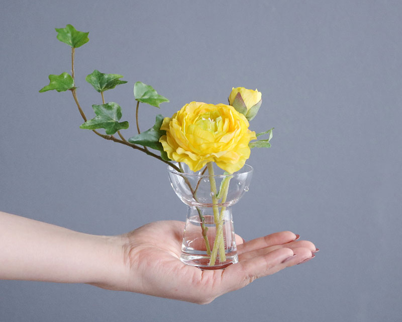 水滴や花瓶に入っている水は近くで見ても本物の様にみえます。手のひらサイズが可愛いです。