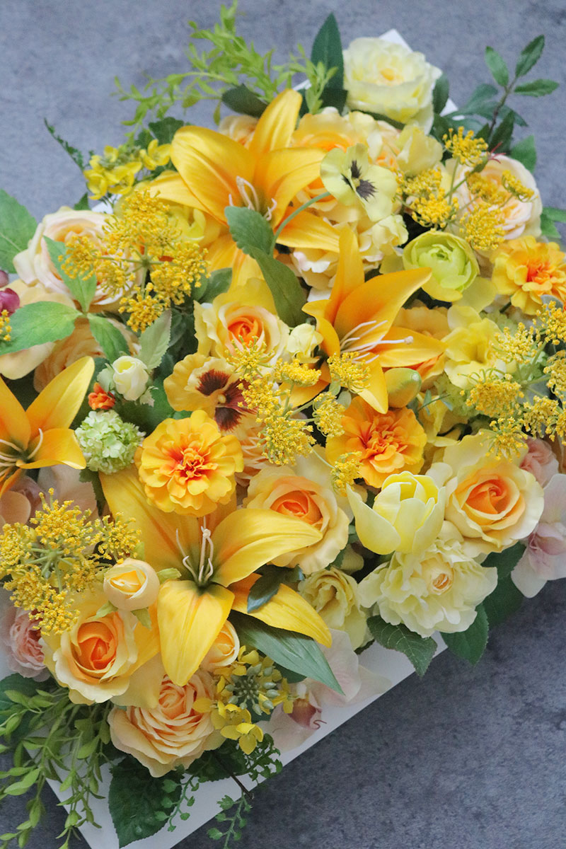 ご希望ございましたら、花の配置や組み合わせ、または在庫が揃えば色の変更など、同価格にて対応いたしますのでお気軽にご相談ください。花材や大きさの変更には、別途追加料金が発生する場合がございます。