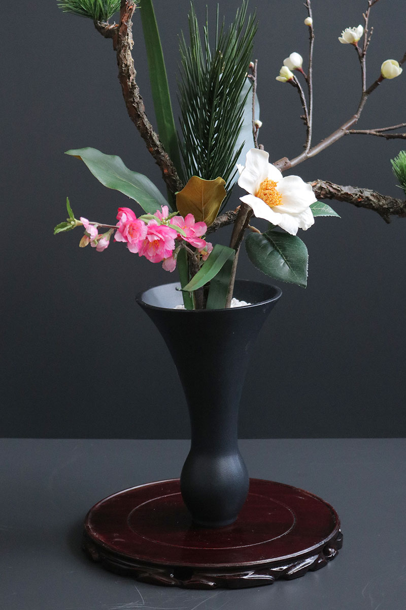 スタイリッシュな萬古焼花器とも相まって、和洋どちらの空間にも調和する美しいデザインです。