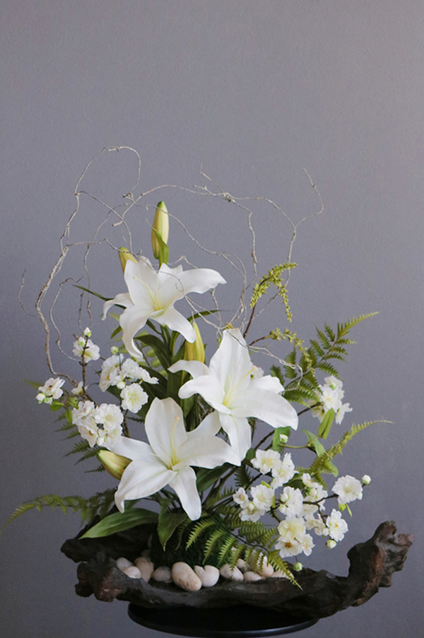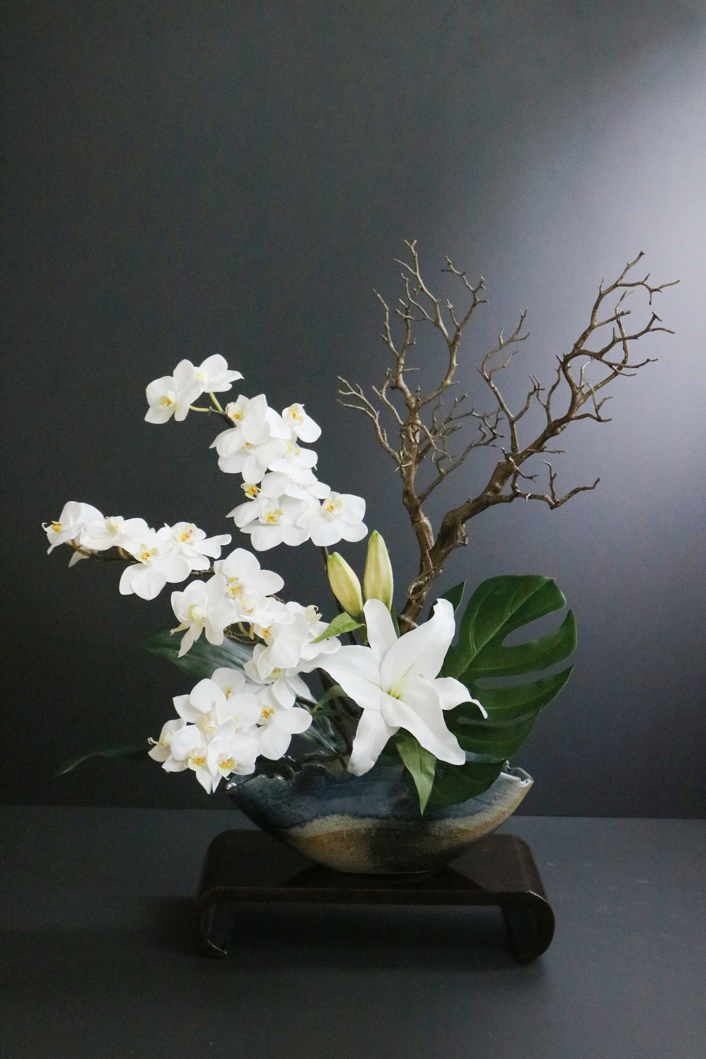 「いけばな」と「アートフラワー」が融合した和風アレンジメント。 和の空間や床の間をはじめ、現代の住環境になじむ和モダンなデザインです。*全て華道家がデザインしております。 Our original style "Japanese Ikebana" and "artificial flower" blended and harmonized.