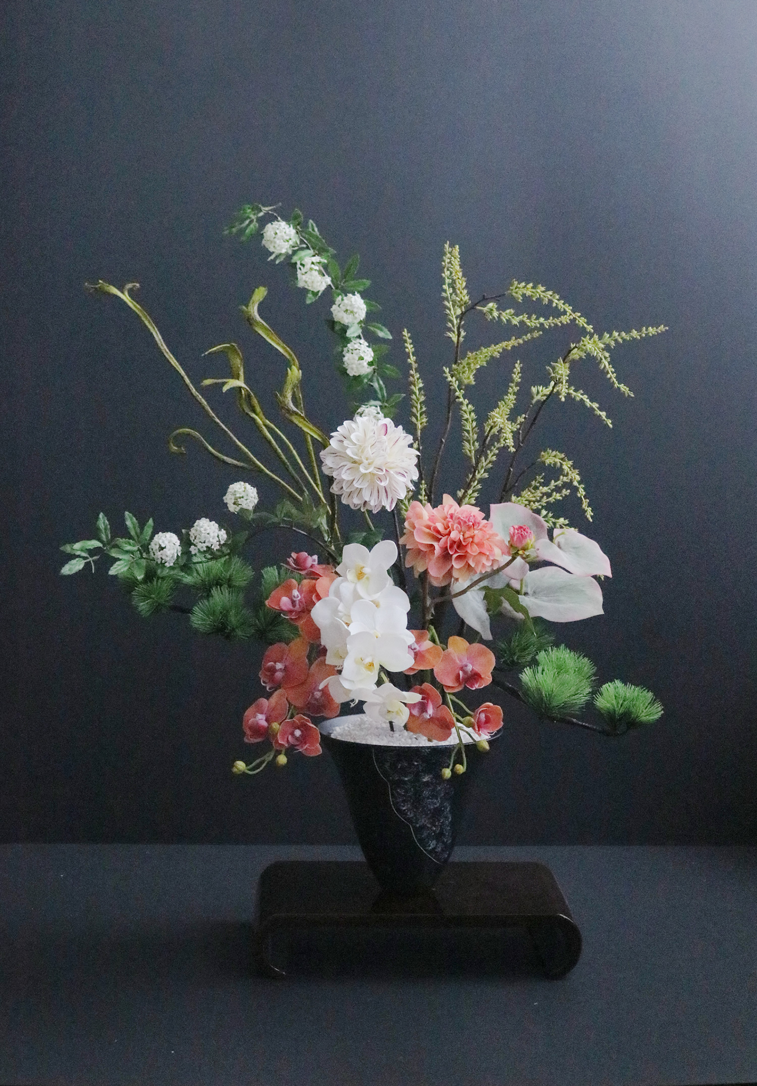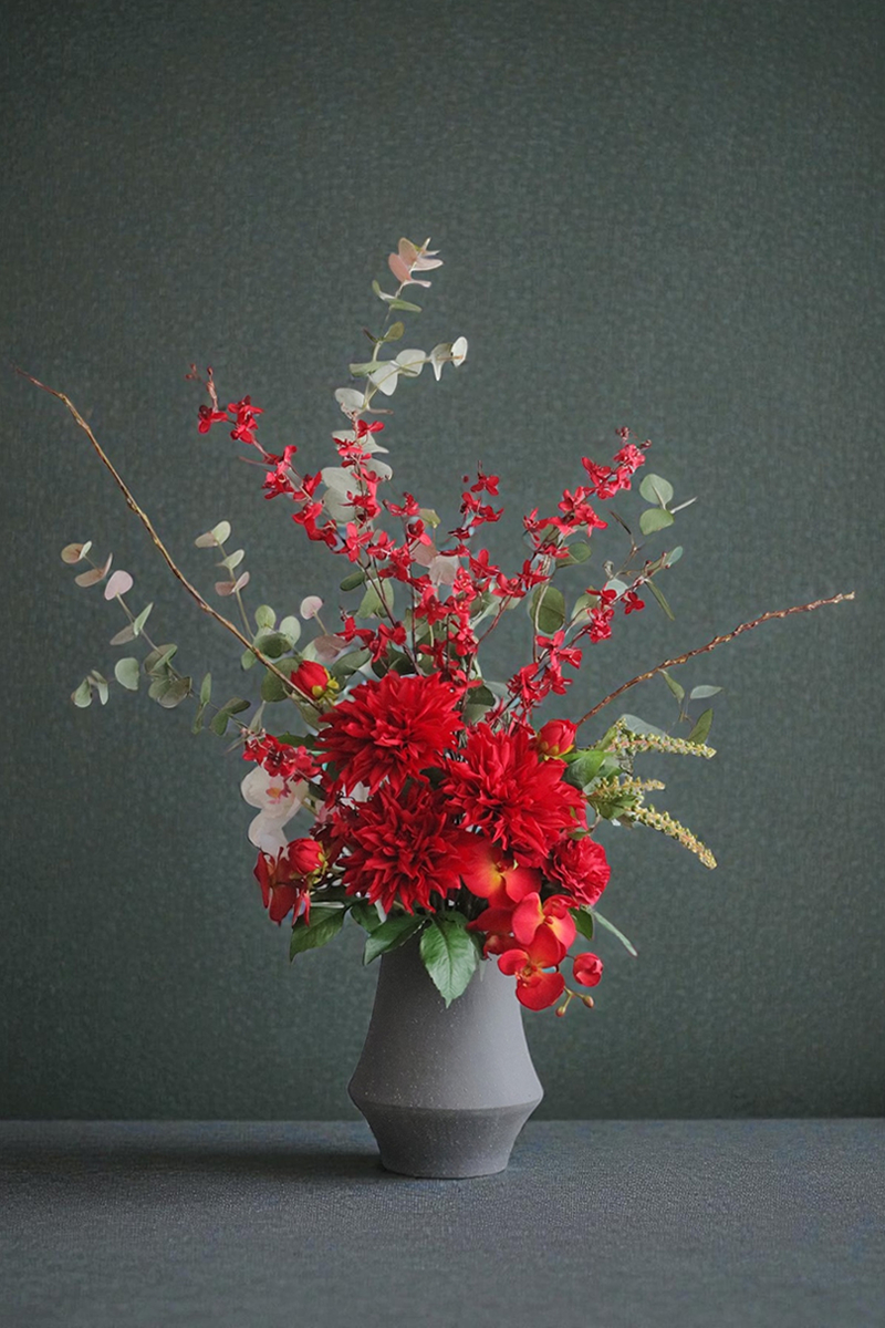 紅白ダリア × 紅白胡蝶蘭 × 萬古焼花器(差額分)