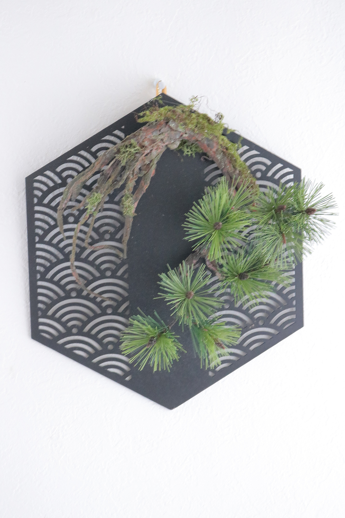 和の空間装飾にぴったりの松の壁掛け飾りです。 和紙、樹脂粘土、ワイヤー、絵具などを用いて、1点ずつ作家が生命を吹き込むようにして制作したハンドメイド作品です。ごつごつとした樹皮や、繊細な花びらや実がとても味わい深く、至近距離でも本物と見分けがつかないほど細部まで丁寧に時間をかけ精巧に作りこまれています。 手入れや水やりなど一切の手間をかけずお楽しみいただけますので、格調高いインテリアアイテムとして、お正月飾りとして、また海外へのお土産や贈り物としてぜひご利用ください。オーダーメイドのご注文も承ります。 Bonsai made using clay, paper and wire by Japanese Bonsai creators. Great for decoration and for souvenirs or gifts.Able to ship overseas(日本クラフト盆栽作家協会監修作品)
