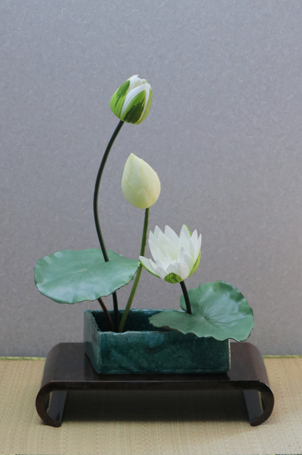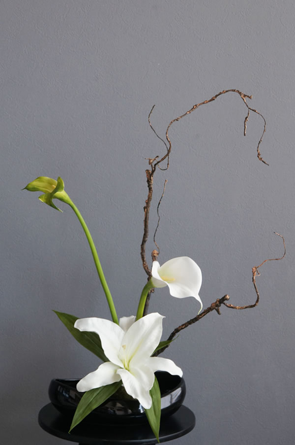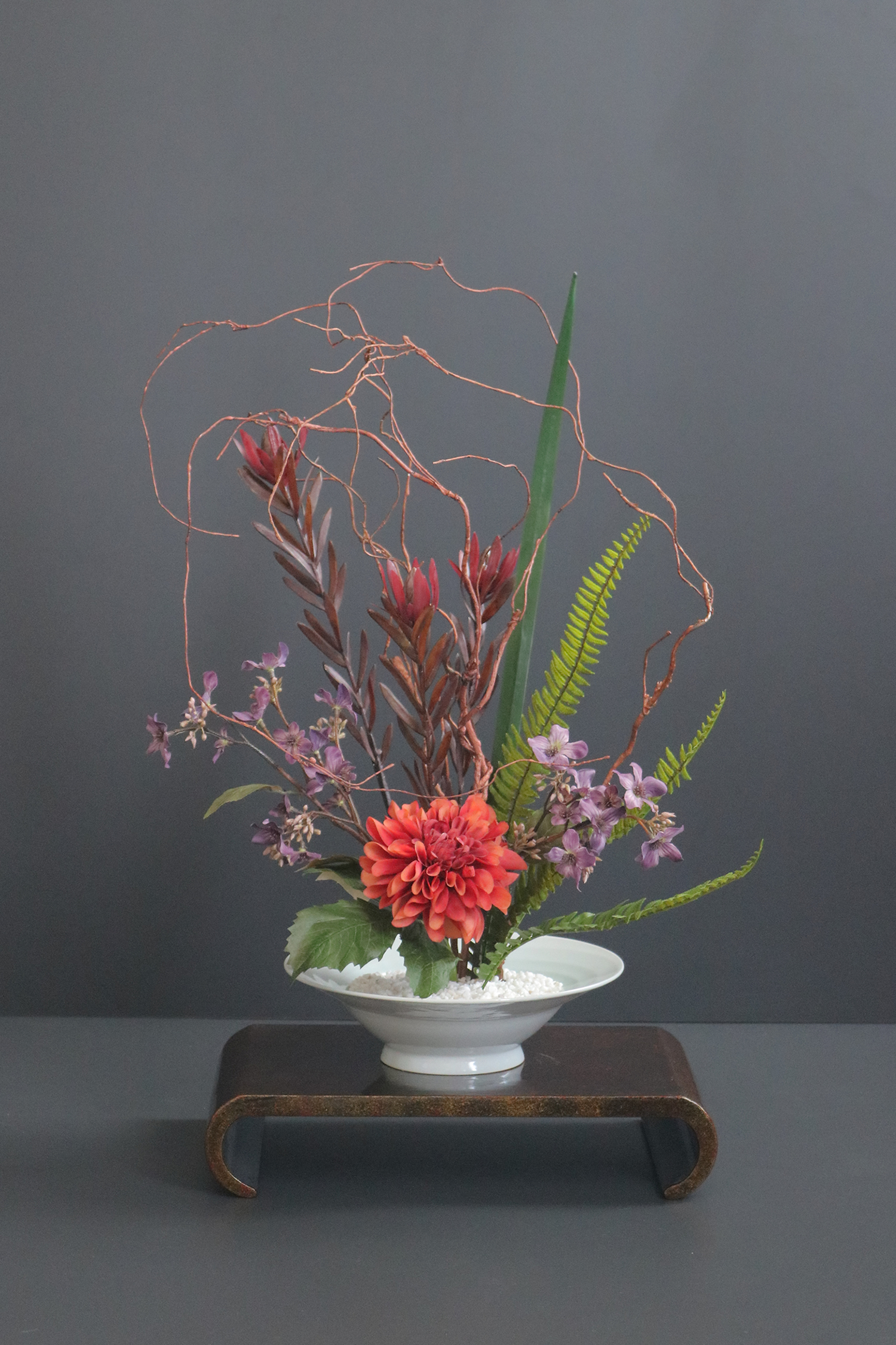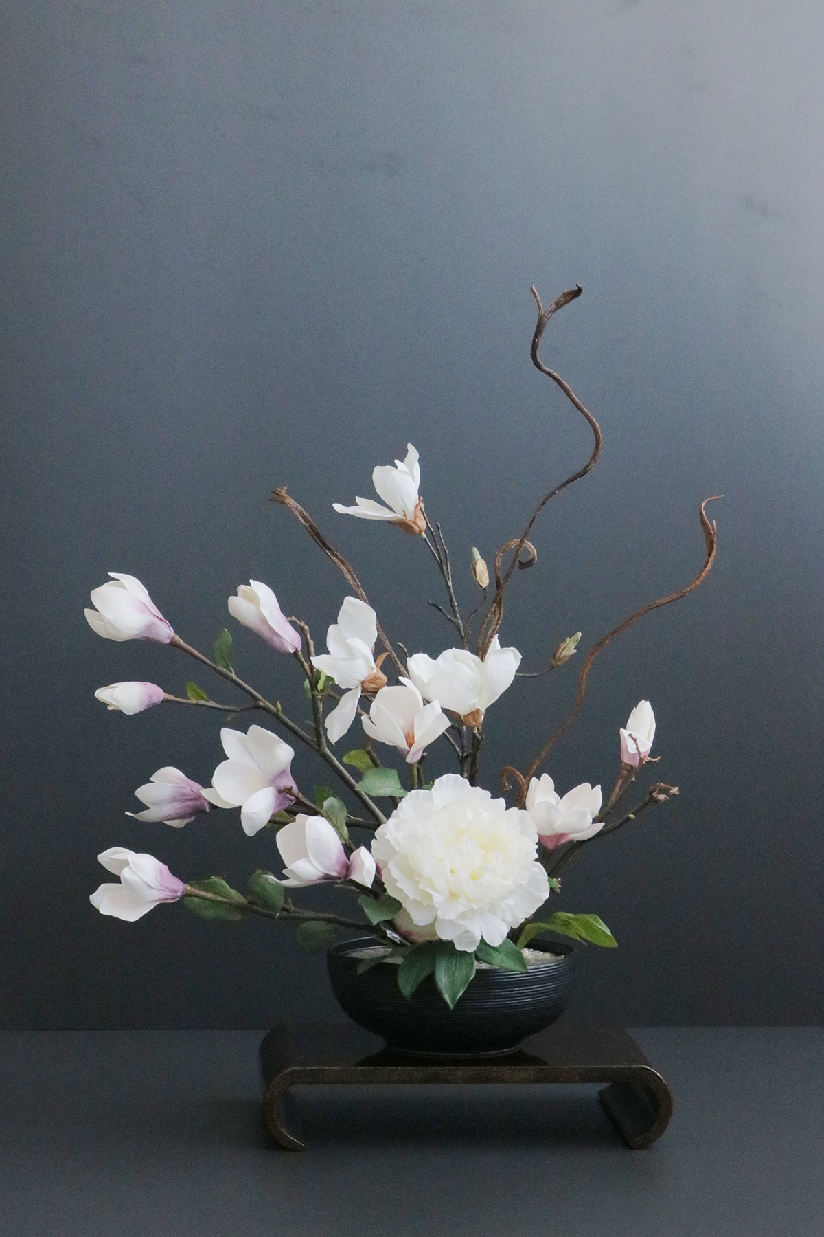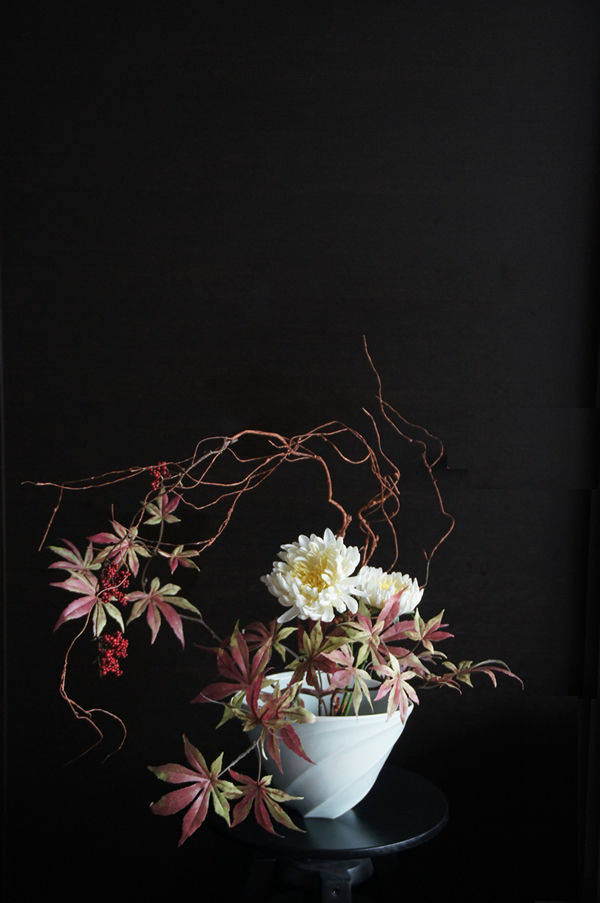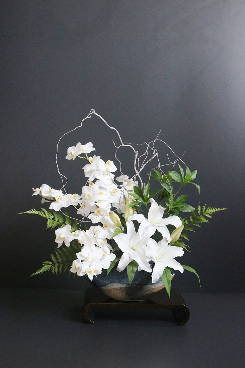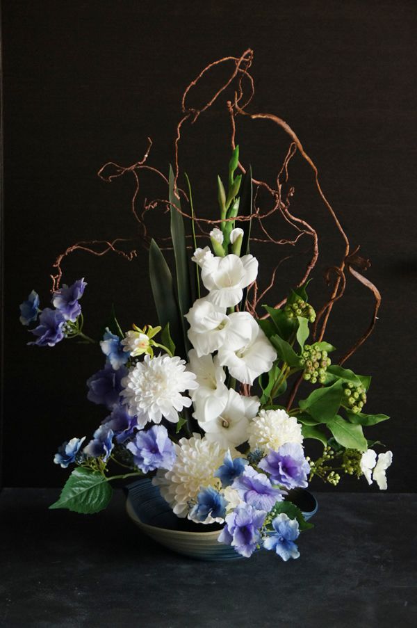 ホワイトダリア×ブルーハイドレンジア 和風スタイル