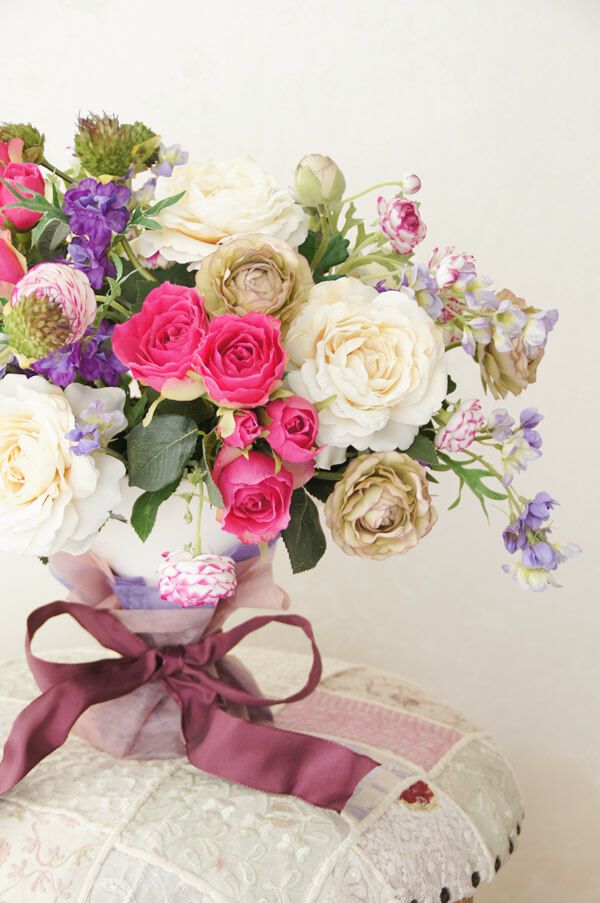 藤×ローズ ピンク・パーブルブーケ シリンダーベース【フレグランスオプションあり】