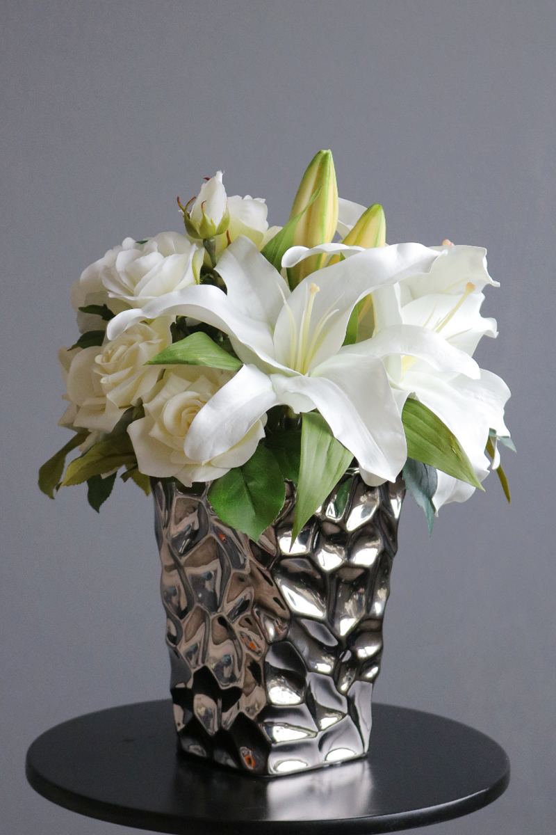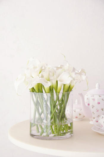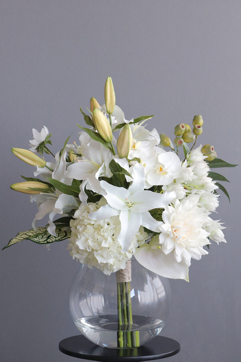 ホワイトカサブランカ×パープル胡蝶蘭 シリンダーベース
