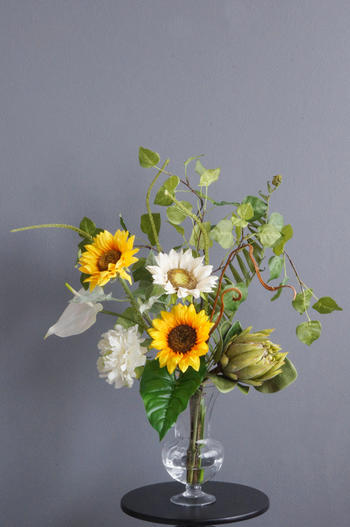 ヒマワリ×プロテア ブーケスタンドベース【フレグランスオプションあり】