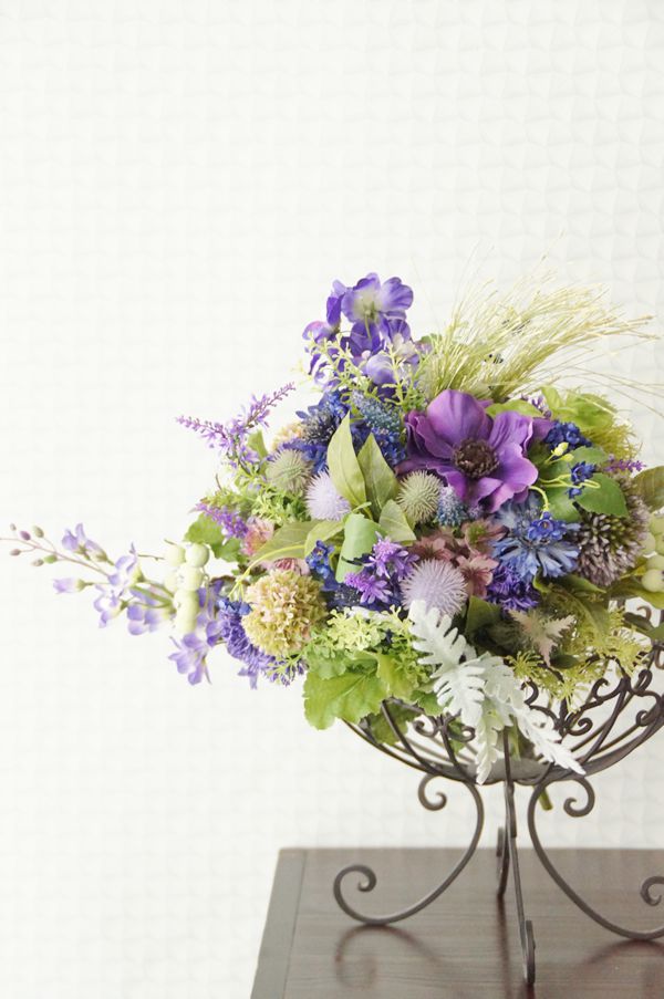 パープル×グリーン インテリアブーケ【フレグランスオプションあり】