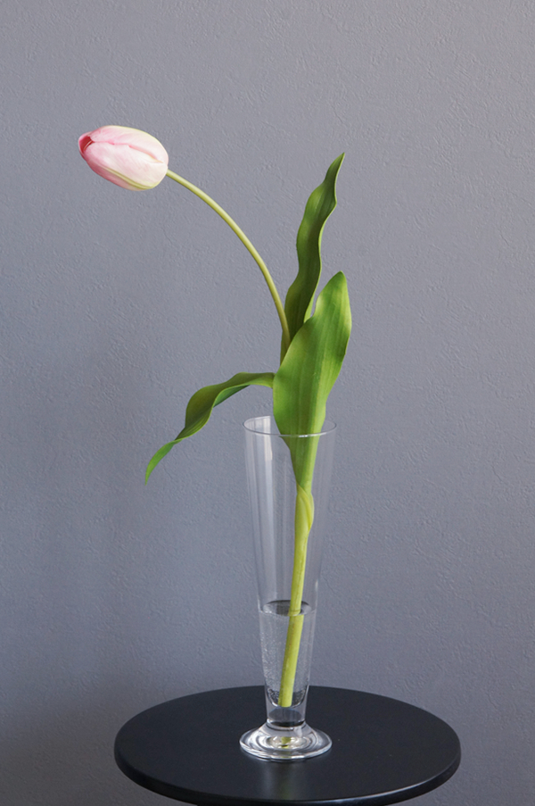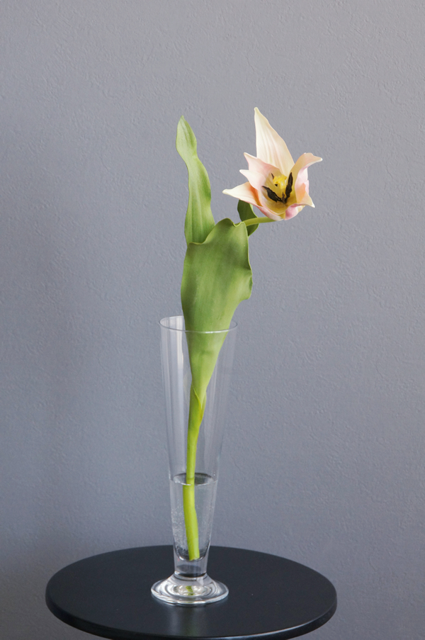 ピーチオレンジチューリップ1輪挿し クリアベース