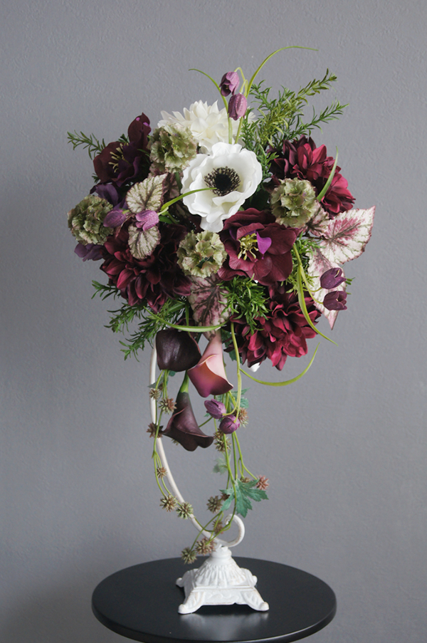 ワインレッドダリア×アネモネ キャスケードインテリアブーケ【フレグランスオプションあり】