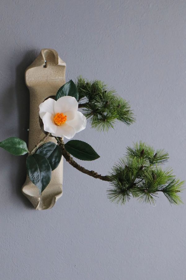 紅白江戸椿 × 陶芸作家 樋口邦春作 青白流文花入