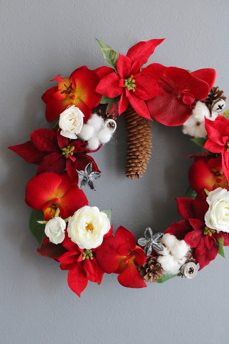 レッドポインセチア×胡蝶蘭 クリスマスリース