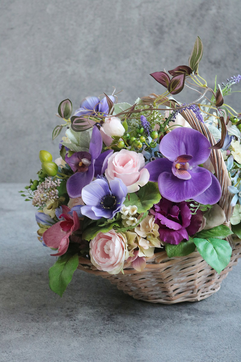 パープル胡蝶蘭×ピンクローズ バスケット【フレグランスオプションあり】