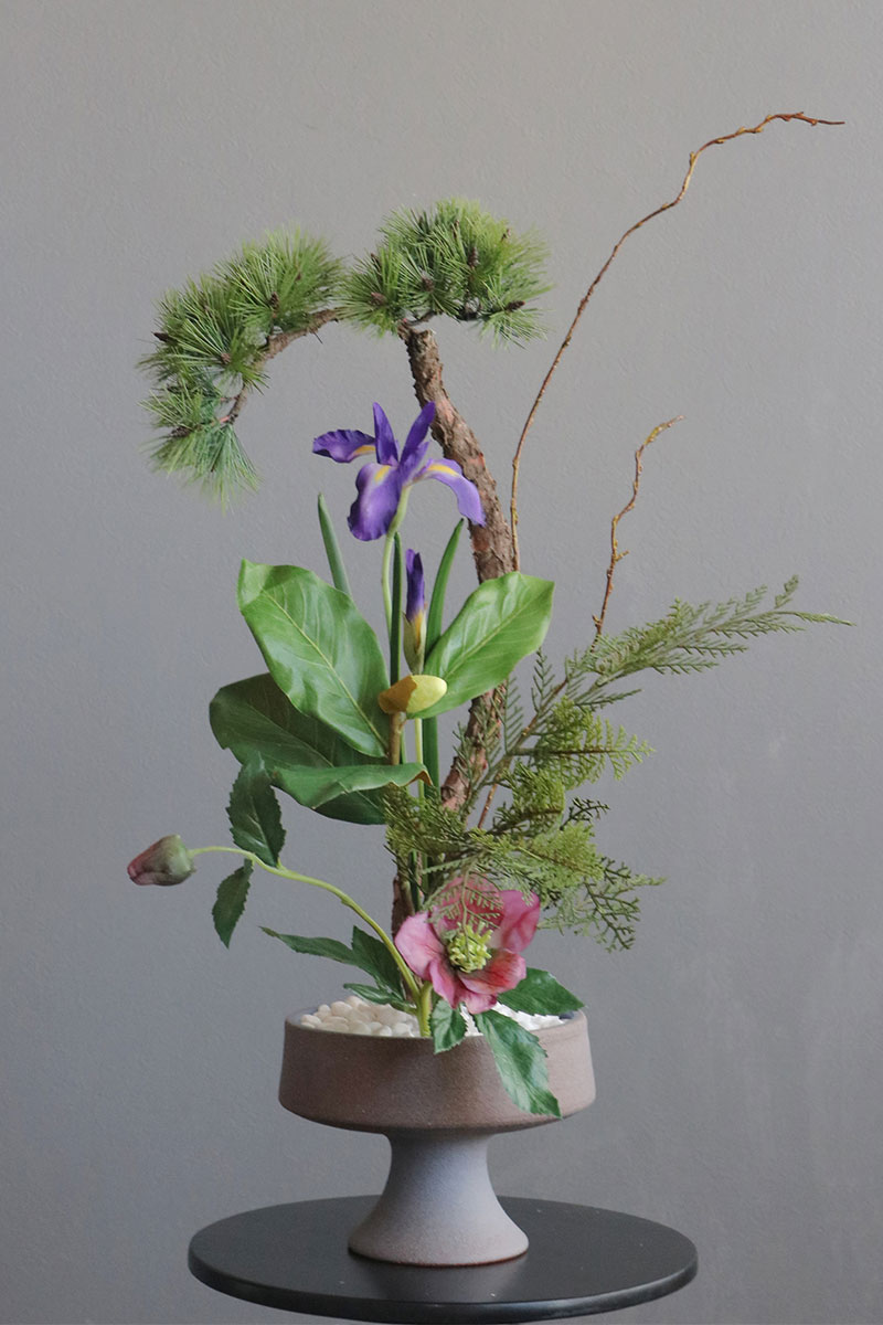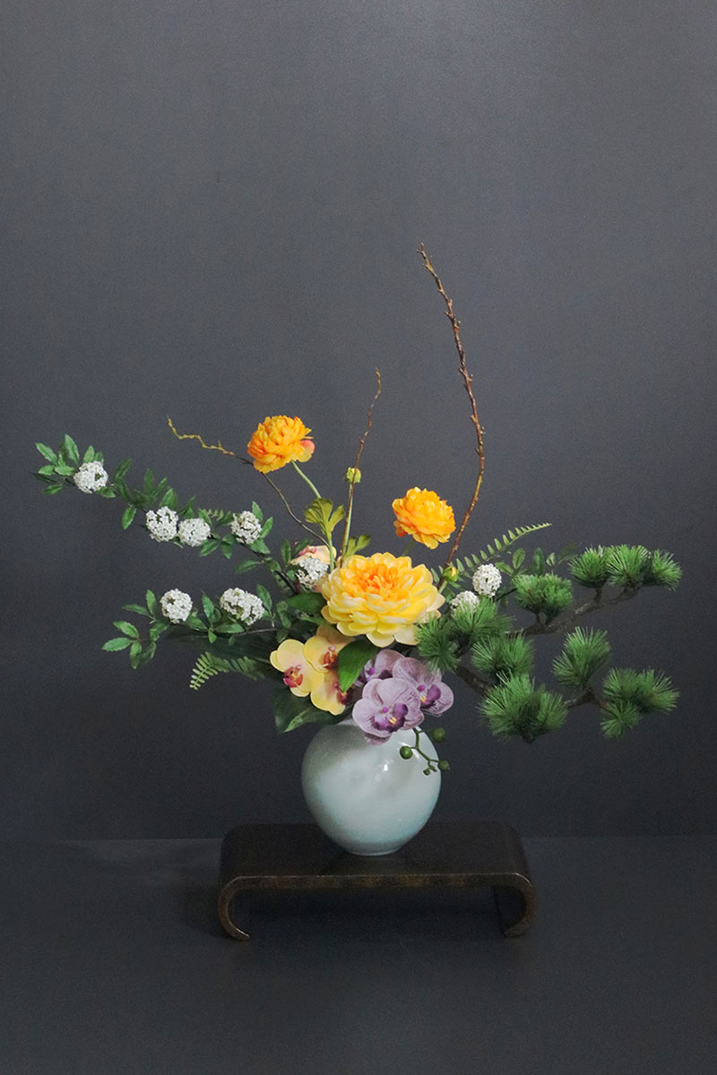 松枝×アイリス×イエロートルコ桔梗 和風スタイル