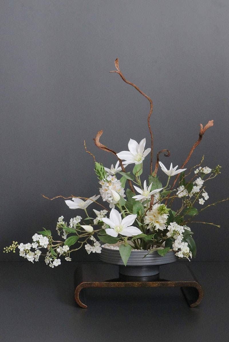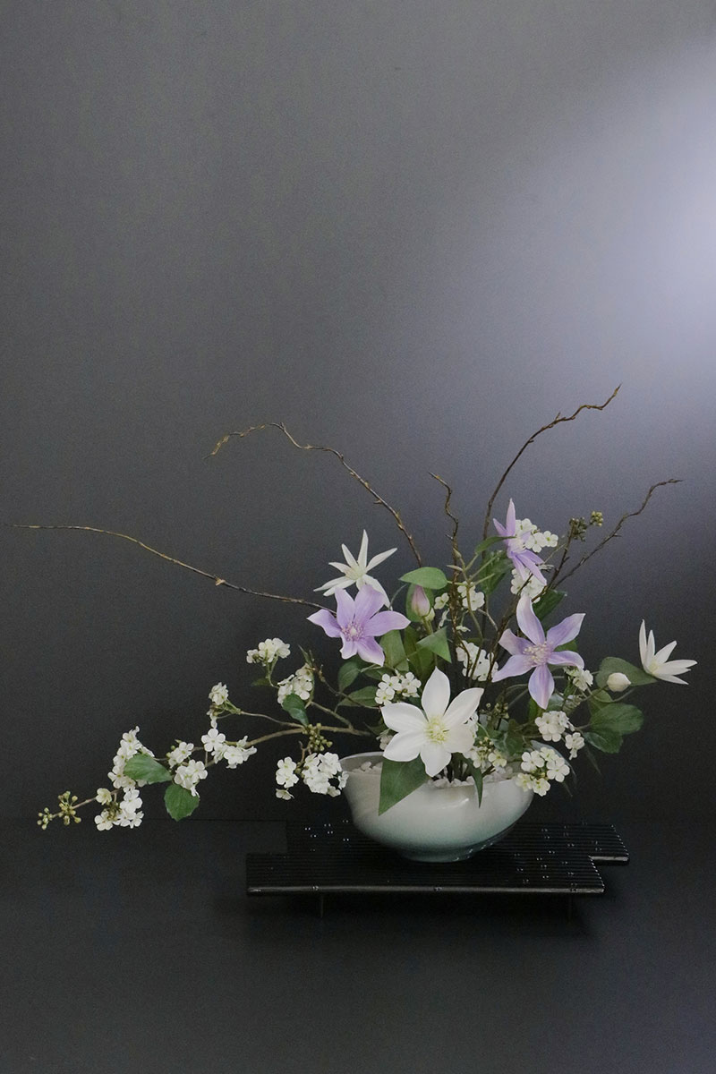 クレマチス × ビバーナム × 陶芸作家 樋口邦春作 青白磁潮流文鉢