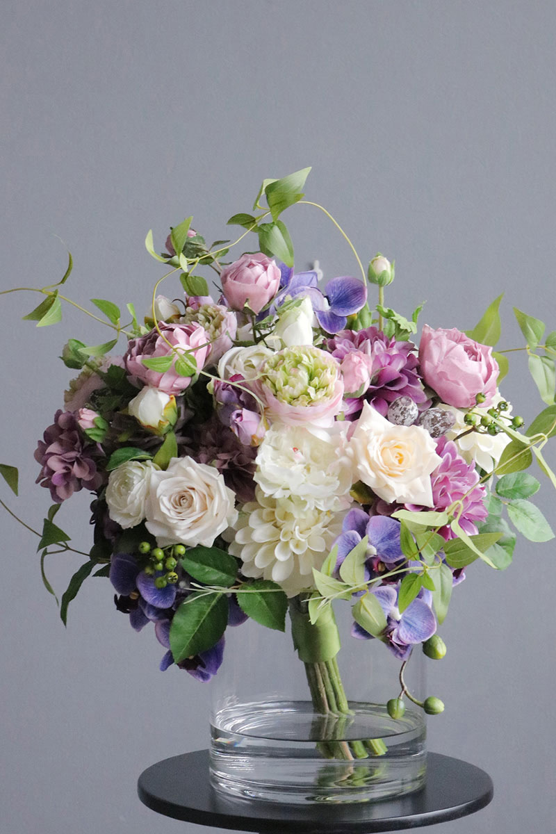 パープル ダリア&ローズ ブーケ シリンダーベース【フレグランスオプションあり】