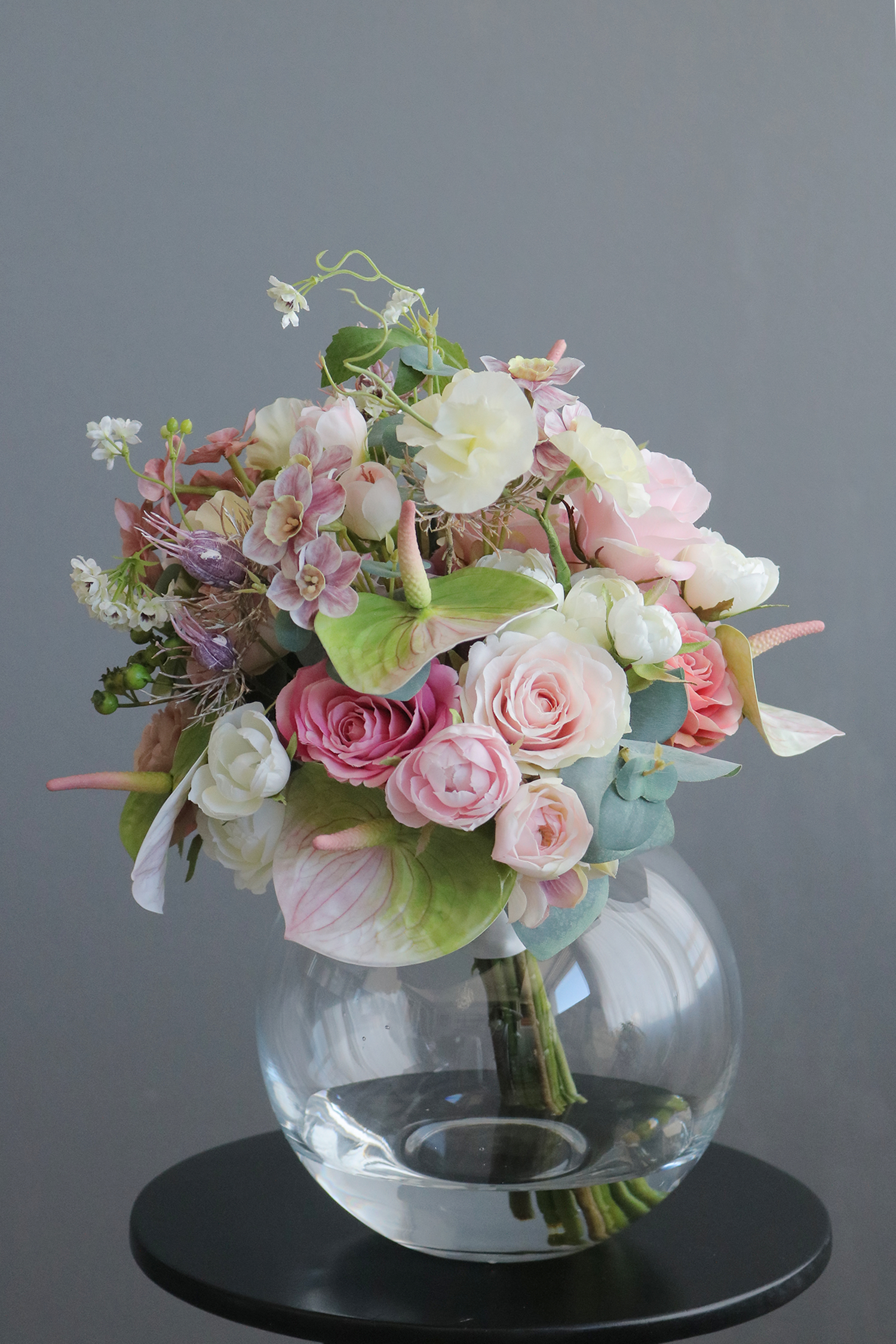 ピンク&グリーン×ローズ ブーケ ボールベース【フレグランスオプションあり】