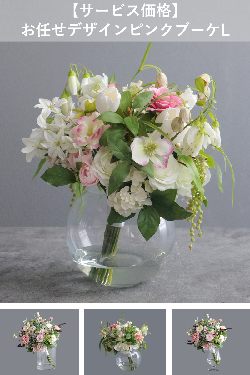 【サービス価格】お任せデザイン ブーケ Lサイズ (ビタミンカラー) 人工水アレンジメント
