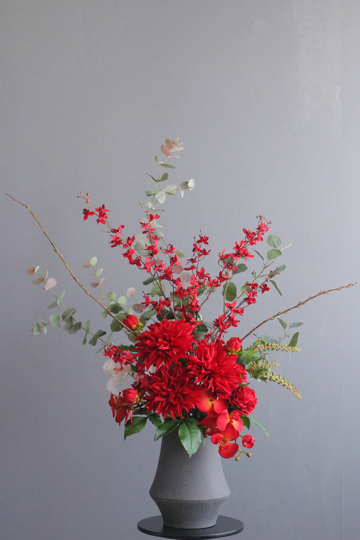 レッドローズ×アネモネブーケ シリンダーベース【フレグランスオプションあり】