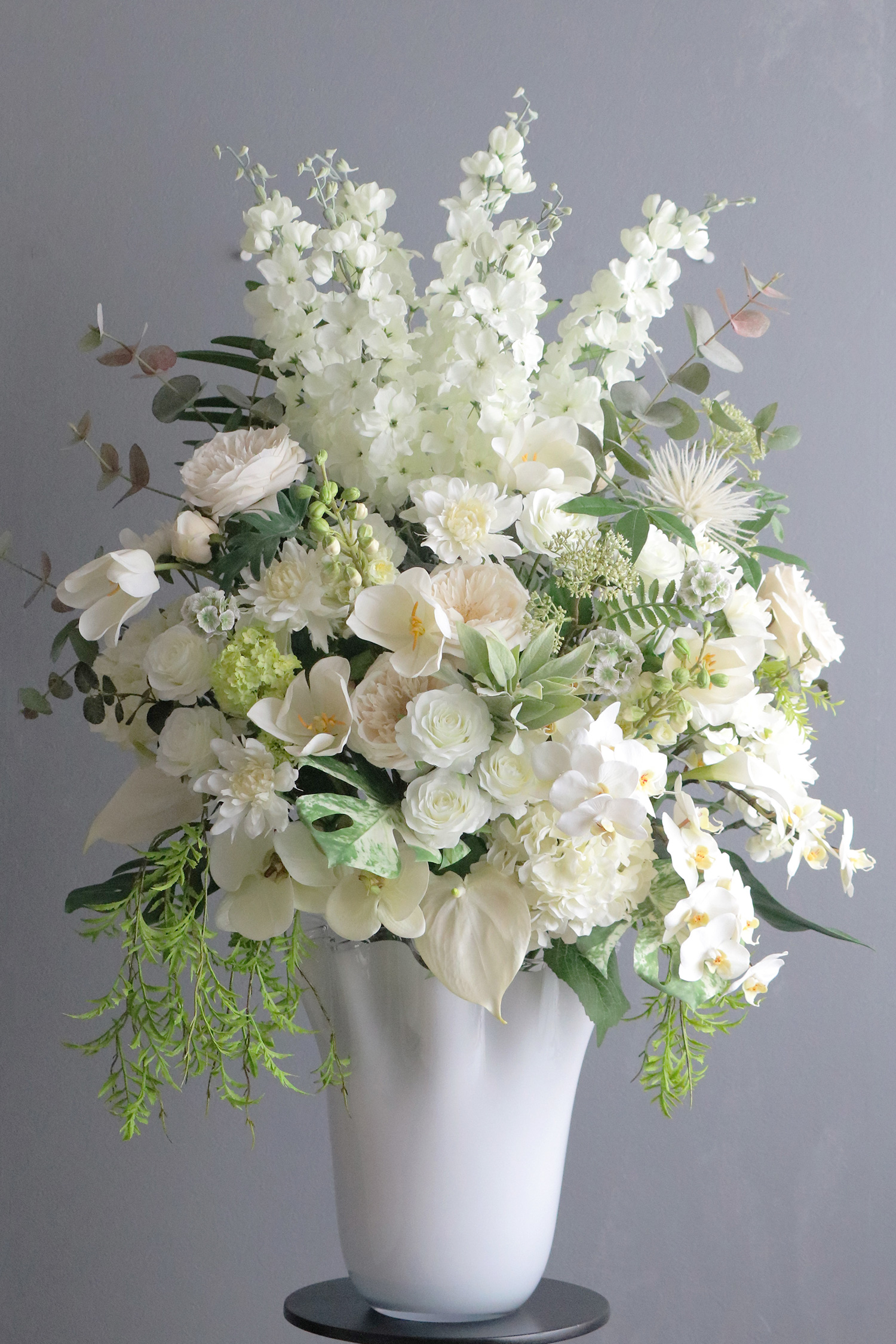 ブルーデルフィニウム×ホワイト芍薬 ブリリアンベース(花器変更)【フレグランスオプションあり】