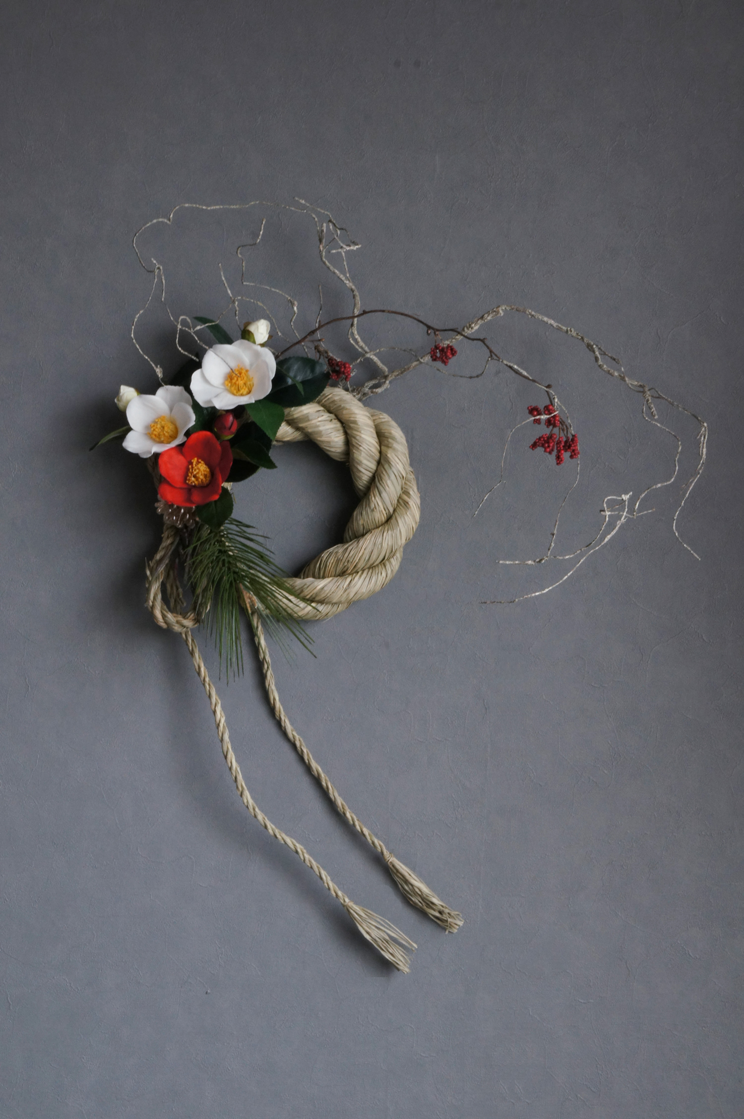 江戸椿×子宝松 和風スタイル(花器変更)