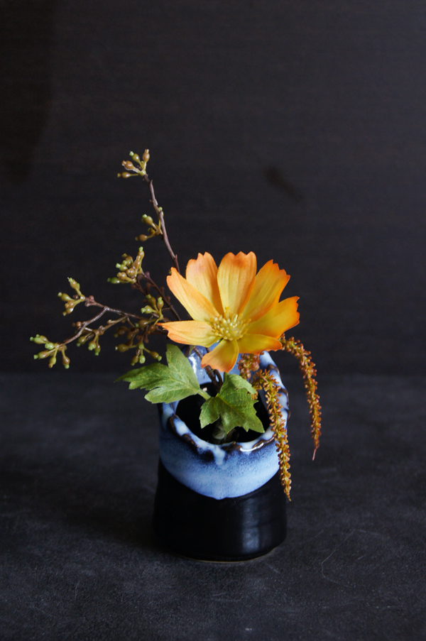オレンジコスモス 陶器ミニベース(花器変更)【ギフトバッグ対応可】