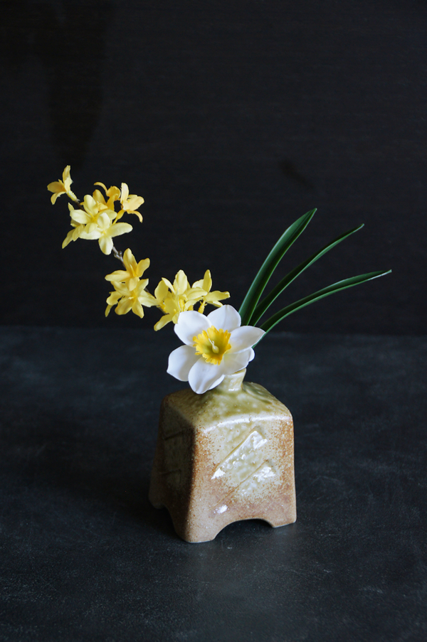 日本水仙×レンギョウ 陶器ミニベース【ギフトバッグ対応可】