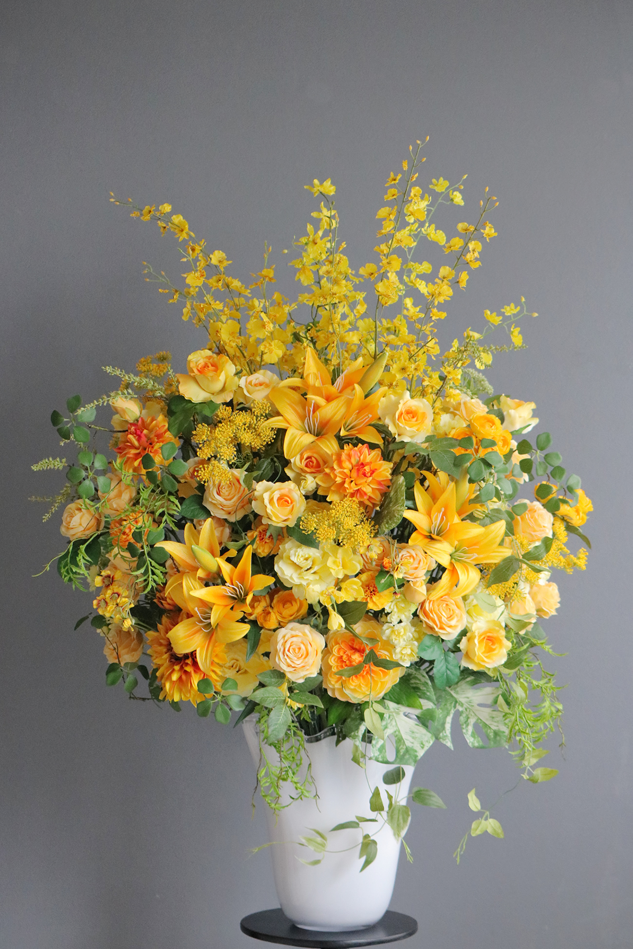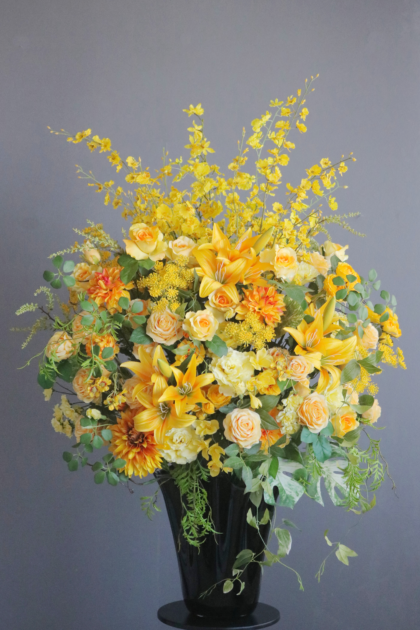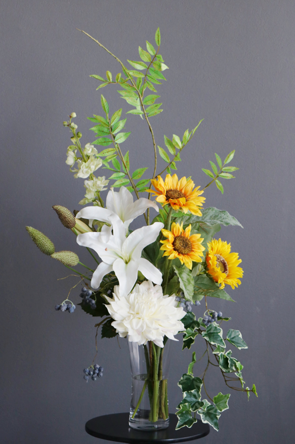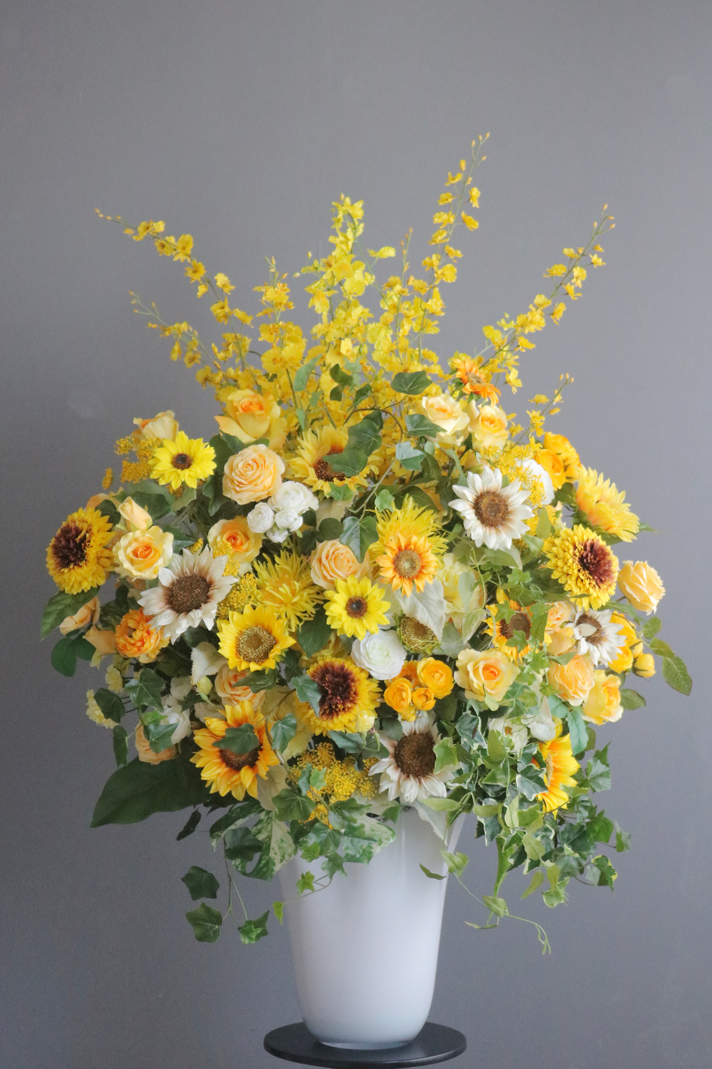 カサブランカ×ヒマワリ お供えアートフラワー(花器変更)