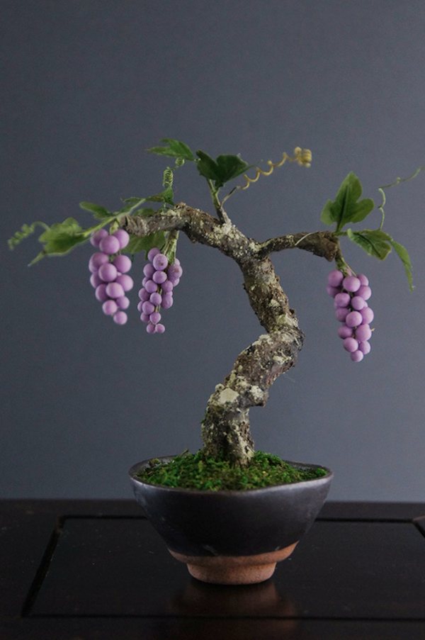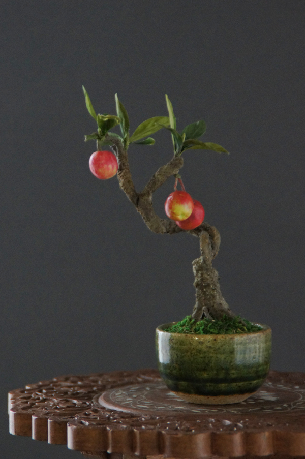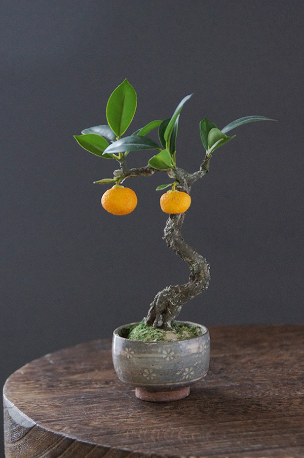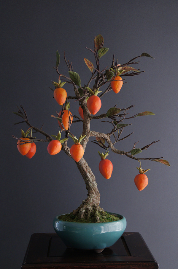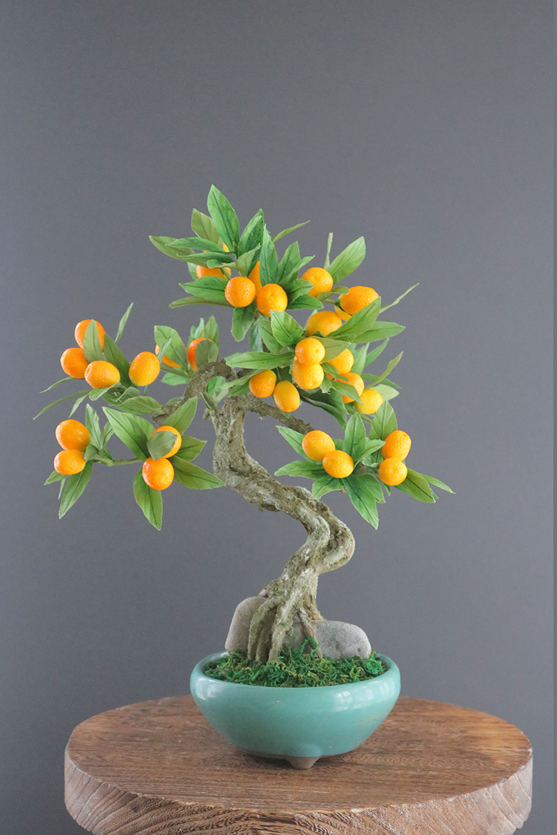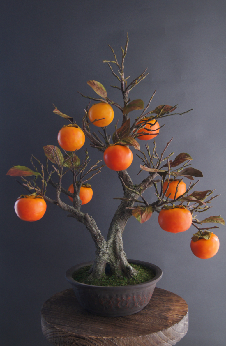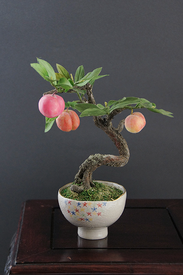 果実一粒ひとつぶから葉っぱ一枚いちまいまで、形成や色付けなど、細部まで丁寧に時間をかけ精巧に手で作り込み、至近距離でも本物と見分けがつかないほどの仕上がりです。 手入れや水やりなど一切の手間をかけずお楽しみいただけますので、格調高いインテリアアイテムとして、また海外へのお土産や贈り物としてぜひご利用ください。オーダーメイドのご注文も承ります。 Bonsai made using clay, paper and wire by Japanese Bonsai creators. Great for decoration and for souvenirs or gifts. Able to ship overseas(日本クラフト盆栽作家協会監修作品)