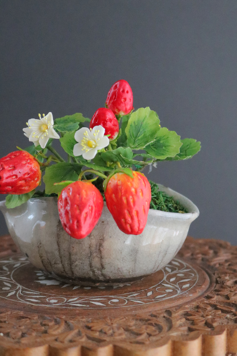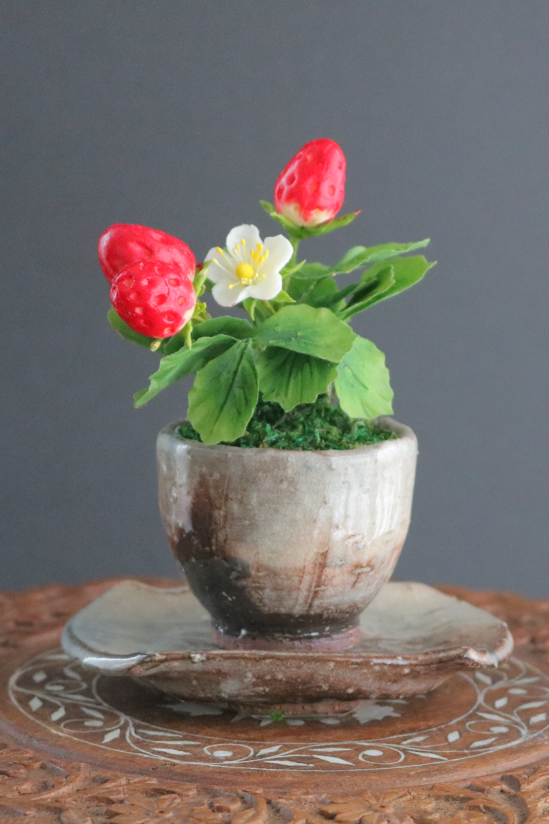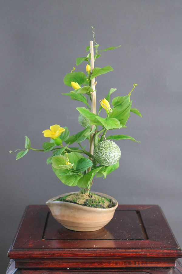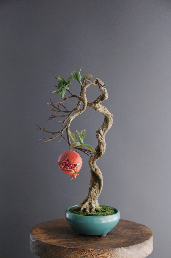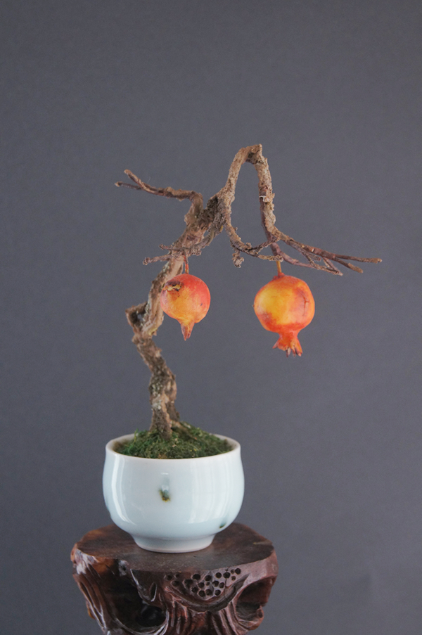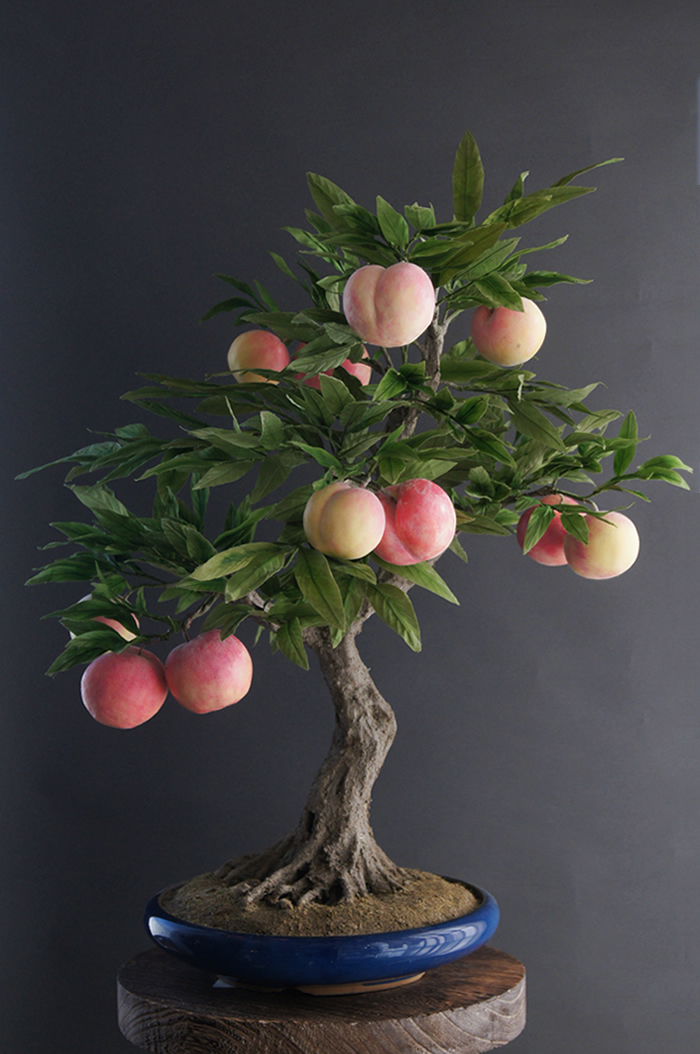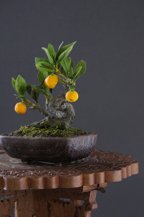 果実一粒ひとつぶから葉っぱ一枚いちまいまで、形成や色付けなど、細部まで丁寧に時間をかけ精巧に手で作り込み、至近距離でも本物と見分けがつかないほどの仕上がりです。 手入れや水やりなど一切の手間をかけずお楽しみいただけますので、格調高いインテリアアイテムとして、また海外へのお土産や贈り物としてぜひご利用ください。オーダーメイドのご注文も承ります。 Bonsai made using clay, paper and wire by Japanese Bonsai creators. Great for decoration and for souvenirs or gifts. Able to ship overseas(日本クラフト盆栽作家協会監修作品)